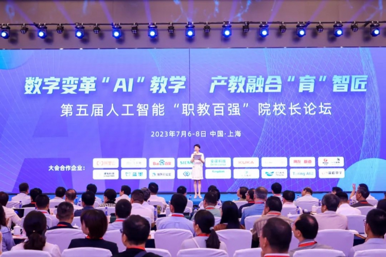 2023年7月6日—8日,第五届人工智能“职教百强”院校长论坛在上海召开,大会围绕“聚智、赋能、融合”主题,来自全国各大高职院校、行业企业、会员单位等数百位代表线下参加了论坛,论坛围绕“数字变革‘AI’教学、产教融合‘育’智匠”展开深度交流研讨,以期寻求人工智能赋能职业教育高质量发展的创新路径,探讨职业院校人工智能创新人才培养的新模式、新方法。大会由联合国教科文组织国际职业技术教育与培训联系中心和全国人工智能职业教育集团主办,上海电子信息职业技术学院和中教全媒体承办。上海市教委职教处马建超处长,闵行区江川路街道陆晓燕副主任、嵇红秀工会主席出席了本次大会。