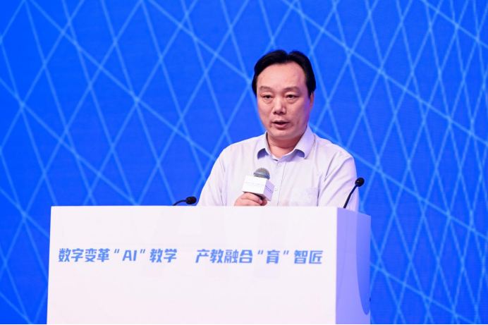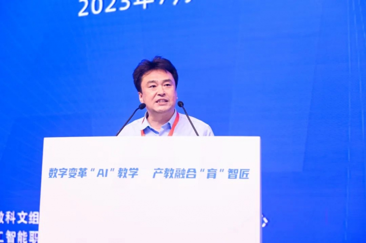 东营职业学院校长解涛为大会致辞,他表示,当前,全球正处于科技飞速发展的时代。人工智能作为当今世界最具前沿性和颠覆性的技术之一,已经深刻的改变了人类的生产生活方式,本次论坛与世界人工智能大会一道,共同聚焦人工智能领域的前沿技术和应用场景,为广大用户提供了一个展示最新成果,深化交流合作的平台。希望借助这次论坛,进一步深化产学研合作,推动人工智能技术与职业教育更好的融合发展。本次论坛邀请了来自全国各地的优秀校长院长、专家学者和企业家代表,共同分享经验,交流思想,凝聚新时代职业教育改革的智慧与力量。