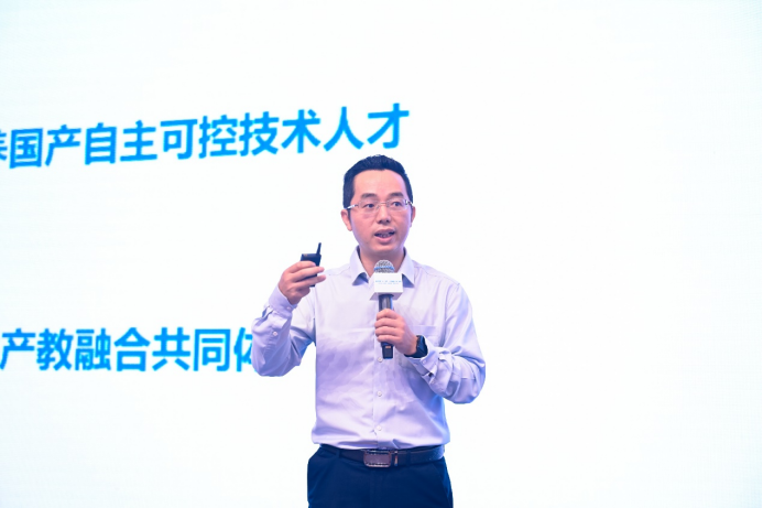 安谋科技教育负责人宋斌介绍了安谋科技最新的自研IP情况,公司将立足于中国产业发展需求,开发更多适合本土产业需求的技术,同时着力培养具有更高工程能力的技术开发人才,在教学内容、科研开发与创新人才培养模式上与职业院校开展新的合作与交流。