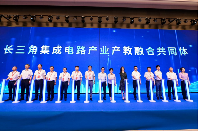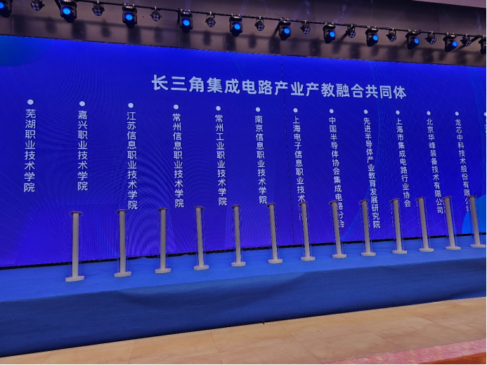 大会现场,上海电子信息职业技术学院发起成立长三角集成电路产业产教融合共同体,并同时成立申芯集成电路产业学院。