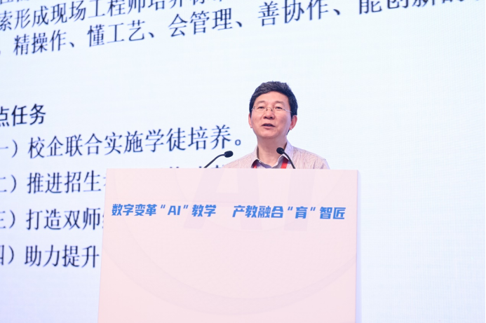 联合国教科文组织国际职业技术教育与培训联系中心秘书长盛鸿宇围绕“产教融合赋能‘三个提升’”做了主题报告。他指出,产教融合赋能职业教育三个提升,一是提升专业体系。《职业教育产教融合赋能提升行动实施方案(2023-2025年)》旗帜鲜明提出“一优先一加快一改造一撤并”,致力推动形成紧密对接产业链、创新链的专业体系,切实做到“学科跟着产业走、专业围着需求转”。二是提升实训水平。《实施方案》聚焦产教融合实训基地建设这一目标任务,优先支持一批产业对接紧、辐射带动强、实训效果好的产教融合实训基地。三是提升融合深度。《实施方案》针对“校热企冷”的情况,支持有条件的产业园区和职业院校、普通高校合作举办混合所有制分校或产业学院,支持推进职业学校股份制、混合所有制改革,允许企业以资本、技术、管理等要素依法参与办学并享有相应权利。通过这些措施,打消企业的顾虑,变“一头热”为“两头甜”。