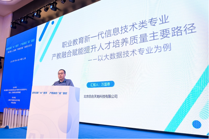 北京四合天地科技有限公司董事长万国德围绕“职业教育新一代信息技术类专业产教融合赋能提升人才培养质量主要路径——以大数据技术专业为例”做了主题报告。他指出,在产教融合背景下,职业教育同产业发展“契合度”较低,职业教育与人才需求“匹配度”较低,职业教育所育之才的获得感、幸福感、荣誉感不高。终身学习能力成为个体适应和成功的关键能力,可通过教师改革、教材改革、教法改革推动培养个体终身学习能力。他以大数据技术专业为例,介绍了产教融合赋能提升人才培养质量主要路径。大数据专业开展项目化教学模式,针对专业基础项目、专业核心项目、综合实践项目开展开展不同的教学模式。他指出,项目化教学模式通过提供学习的自主性和选择性,培养学习方法和技能,引导学生进行独立思考和创新,创设多元化的学习情境等打造个体终身学习能力。