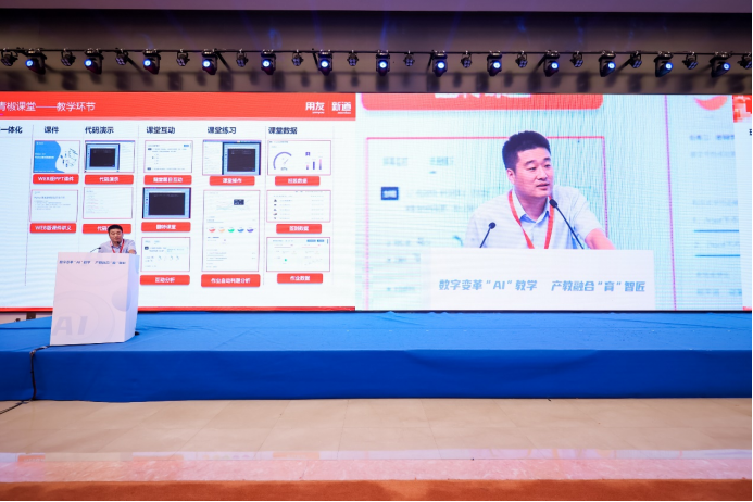 新道科技副总裁郑洪滨围绕“数智技术赋能人工智能教学资源建设 新道科技校级‘理实一体化’教学资源库建设方案”做了主题报告。他介绍,新道科技股份有限公司作为中国领先的数智化人才培养服务提供商,10多年来,新道科技深耕数字教育,致力于“把数智商业融入校园”,持续专注新商科、新工科、社培认证三大领域,规模化培养数智化人才。他指出,在大力推动国家教育数字化战略行动背景下,建设教学资源库,是赋能教师教学,学生学习重要的体现。优秀教学资源库平台,应在多维度赋能教学和学生学习。新道科技推出教学全场景的教学资源库平台——“青椒课堂”,在课后实训、作业考试、教学环节、技能竞赛等方面提供全方位教学服务,在学情方面实现精准分析、个性教学。新道科技打造丰富的人工智能、大数据技术、信息安全、工业互联网等课程资源库,赋能专业教育的教与学。