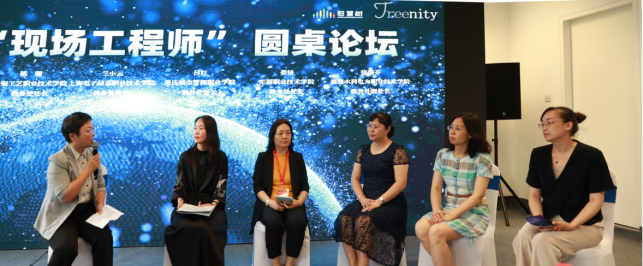 “现场工程师”圆桌论坛,会议由软通动力秦江艳女士主持,来自无锡工艺职业技术学院教务处陈珊处长、上海电子信息职业技术学院教务处兰小云处长、芜湖职业技术学院教务处娄洁处长、重庆城市管理职业学院教务处吕红处长、福建水利电力职业技术学院教务处张瑞芬副处长共同参与讨论。