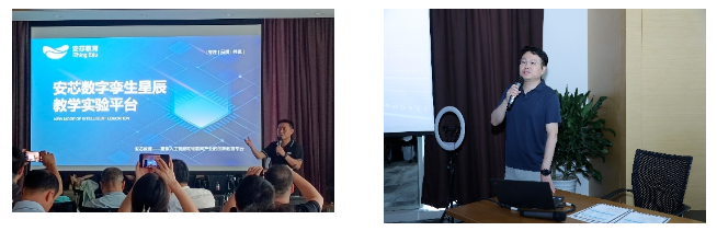 随后安芯教育总经理王翔、安芯教育技术专家李超鹏就立足星辰处理器开发的安芯数字孪生教学实验平台的应用和落地案例做了介绍,同时做了现场应用演示。